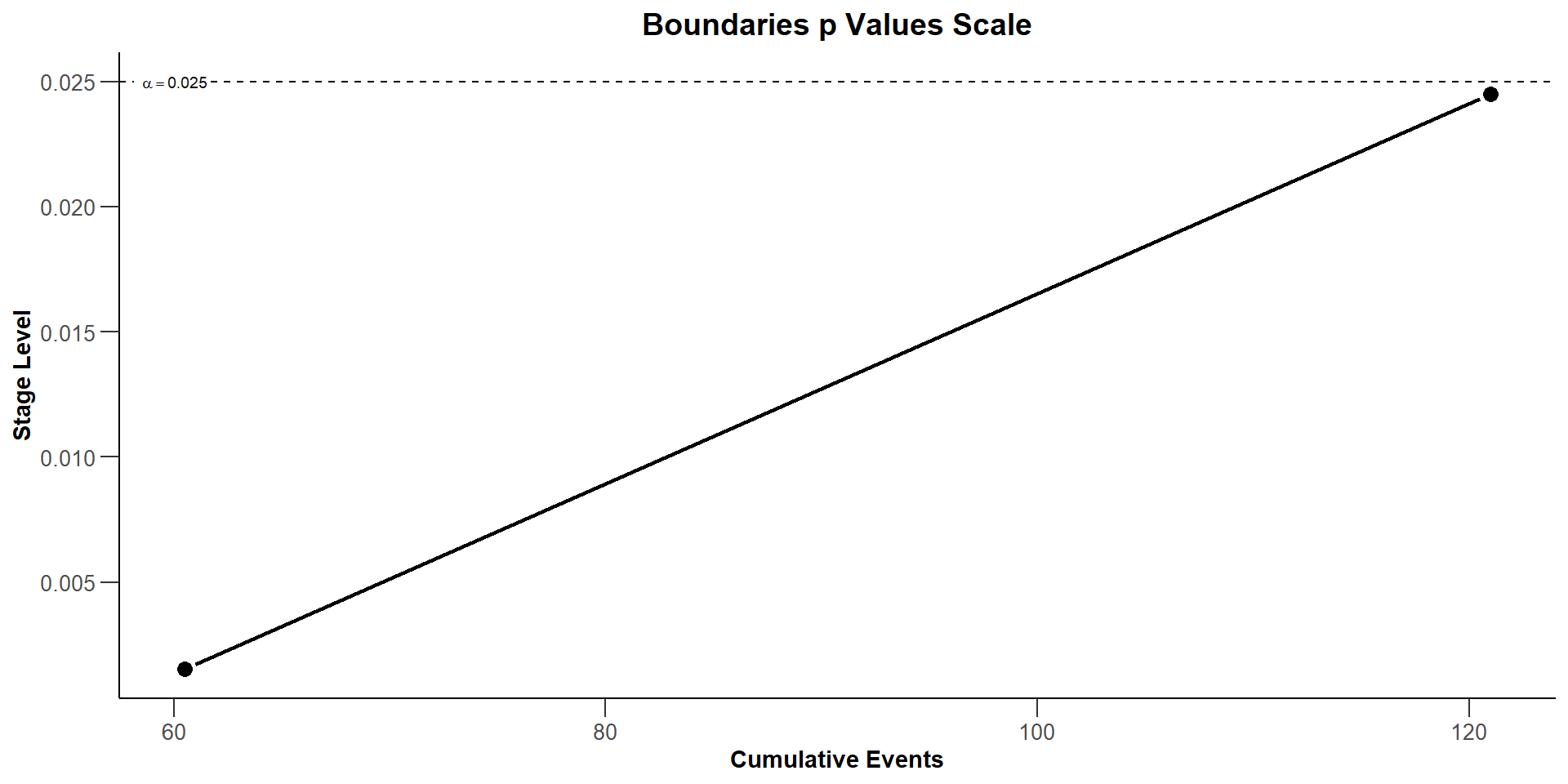 | Stage level (one-sided) | 0.0250 |